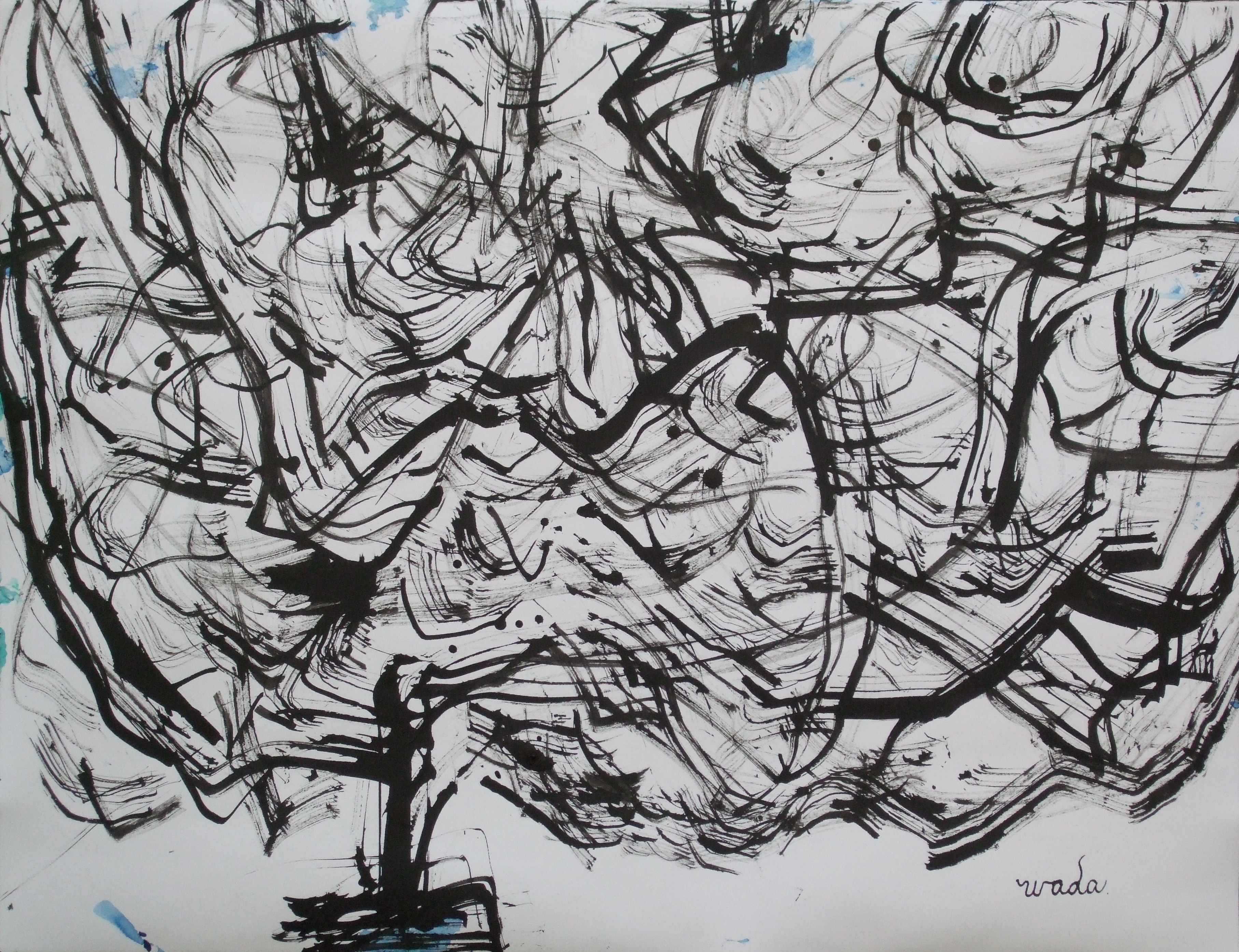 紙に墨、水彩、グワッシュ