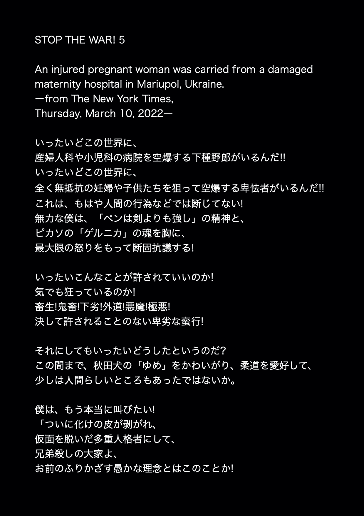 STOP THE WAR! 5 「憎しみの家」