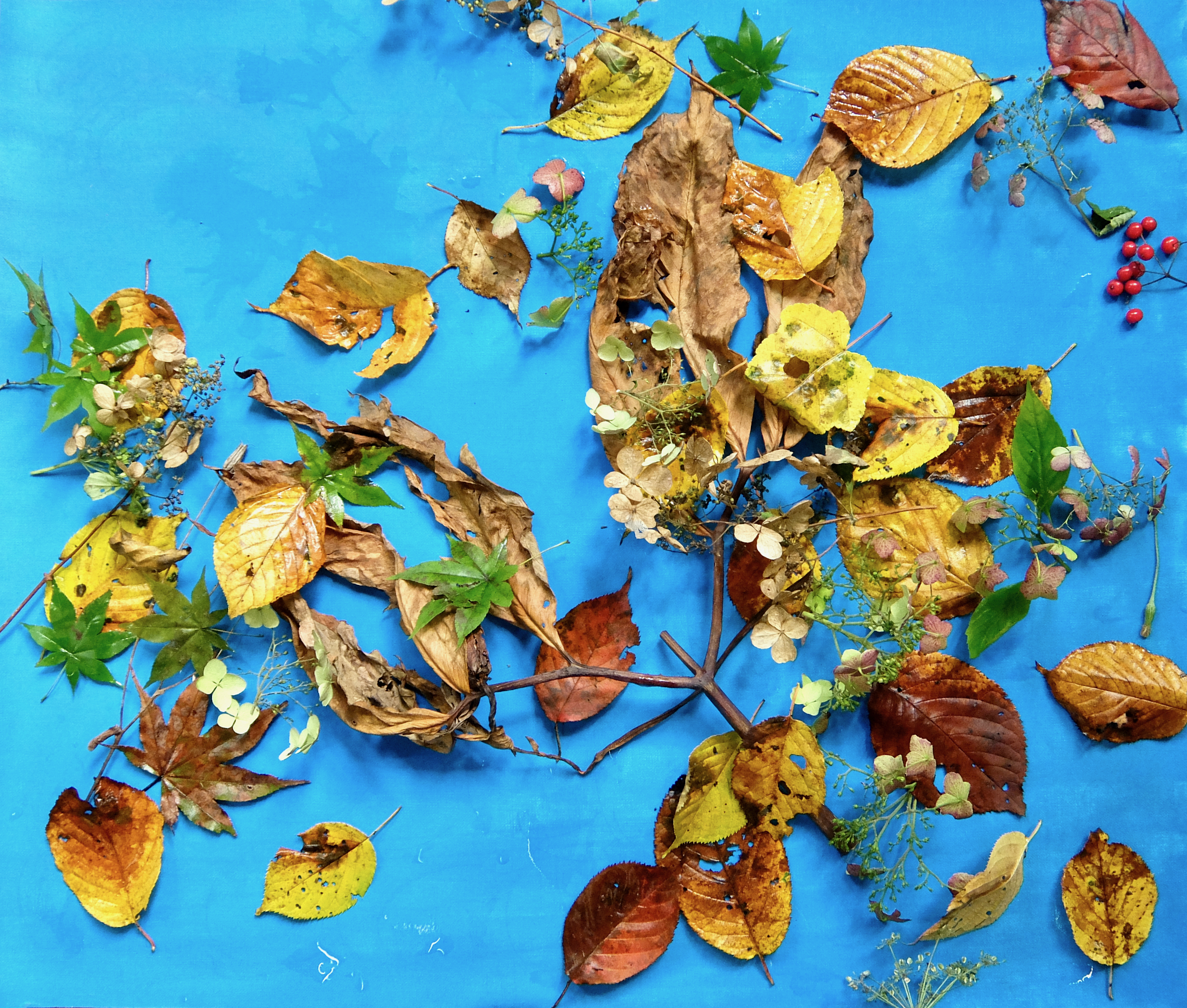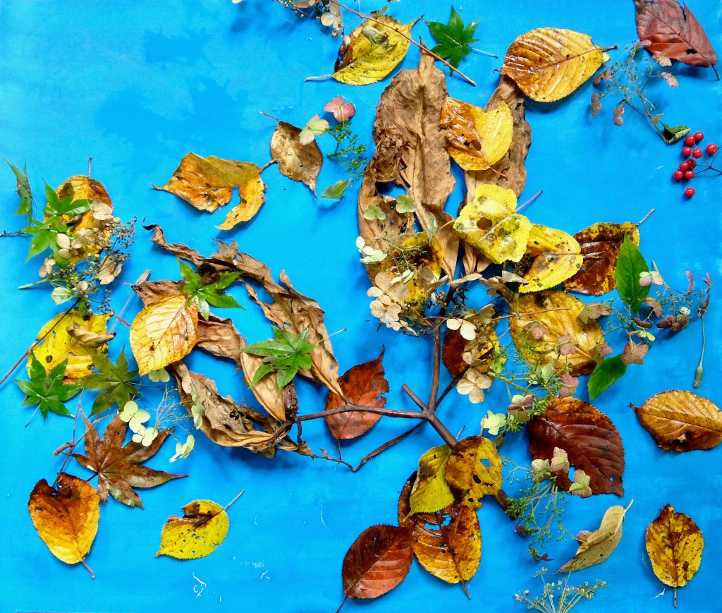 Plants and acrylic on canvas