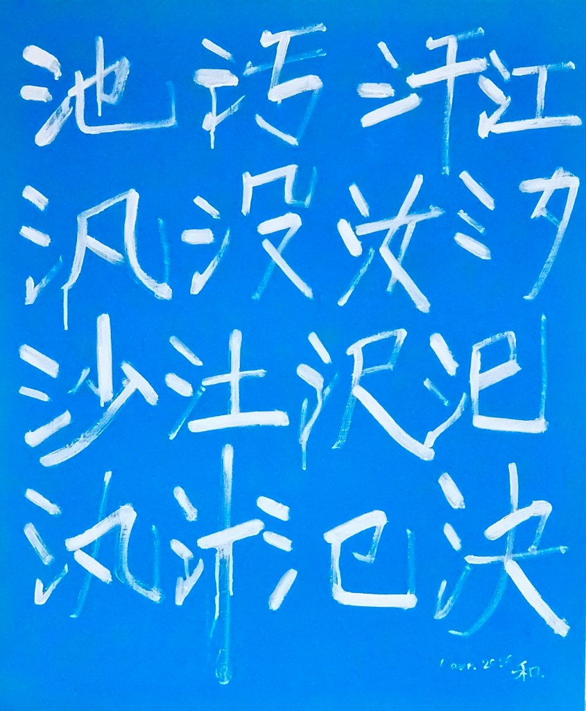 Kanji Painting Take 13Acrylic on canvas, 29.0×24.0 in. (72.7×60.6 cm)Composition of Radical 85 or Radical waterComposition du Radical 85氵(さんずい) の構成