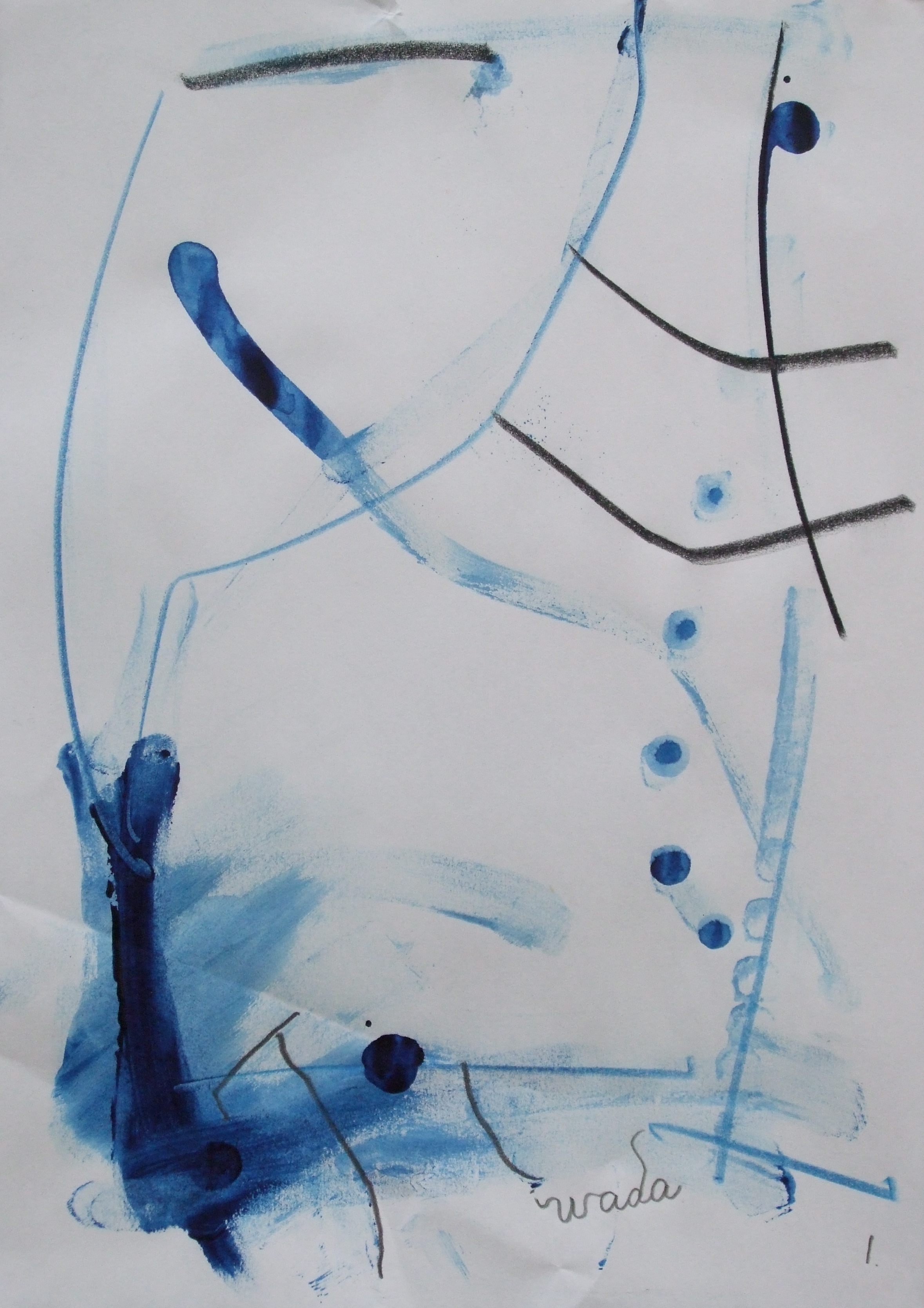 Aquarelle, crayon, conté et crayon bleu sur papier