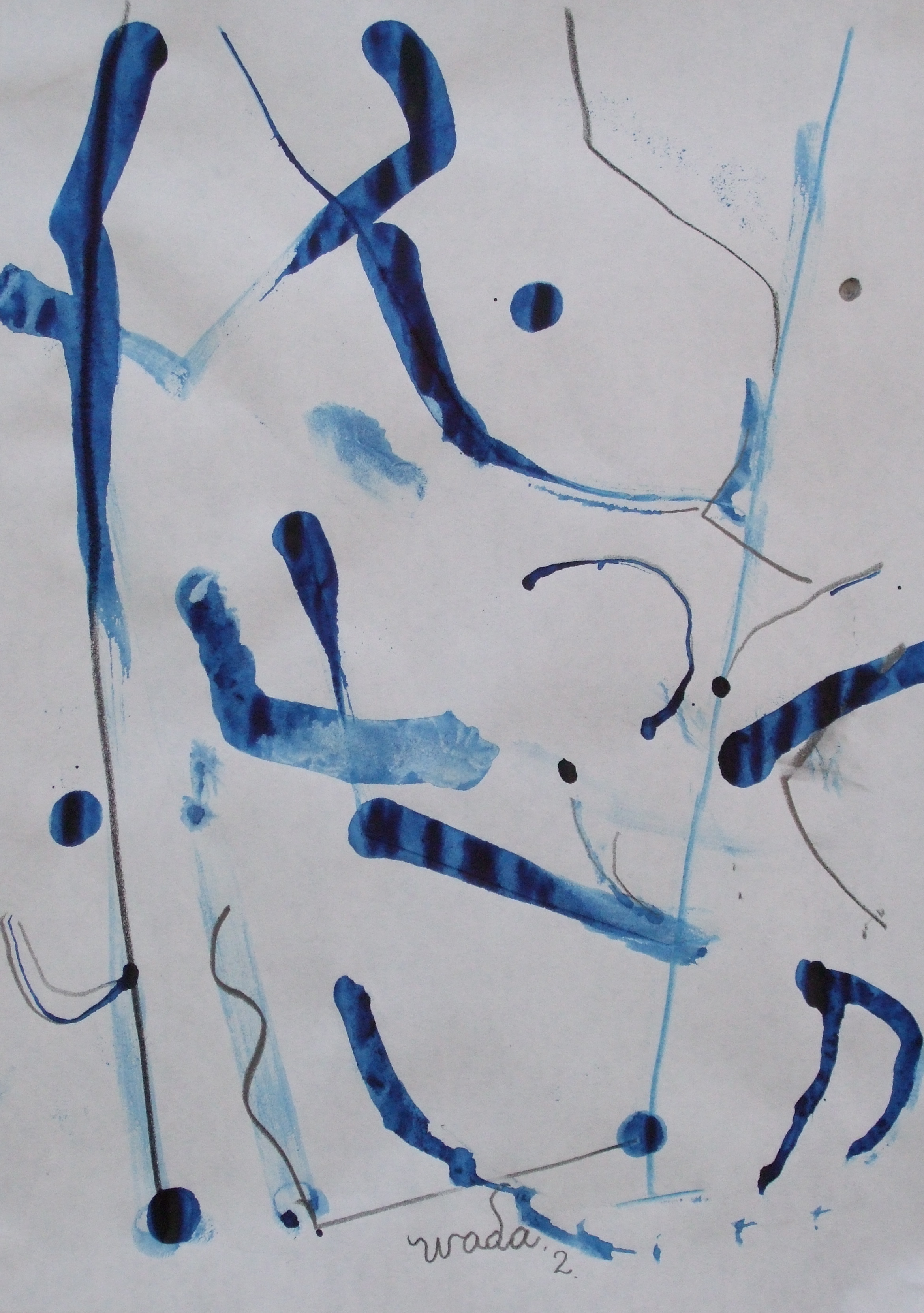 紙に水彩、鉛筆、コンテ、青鉛筆