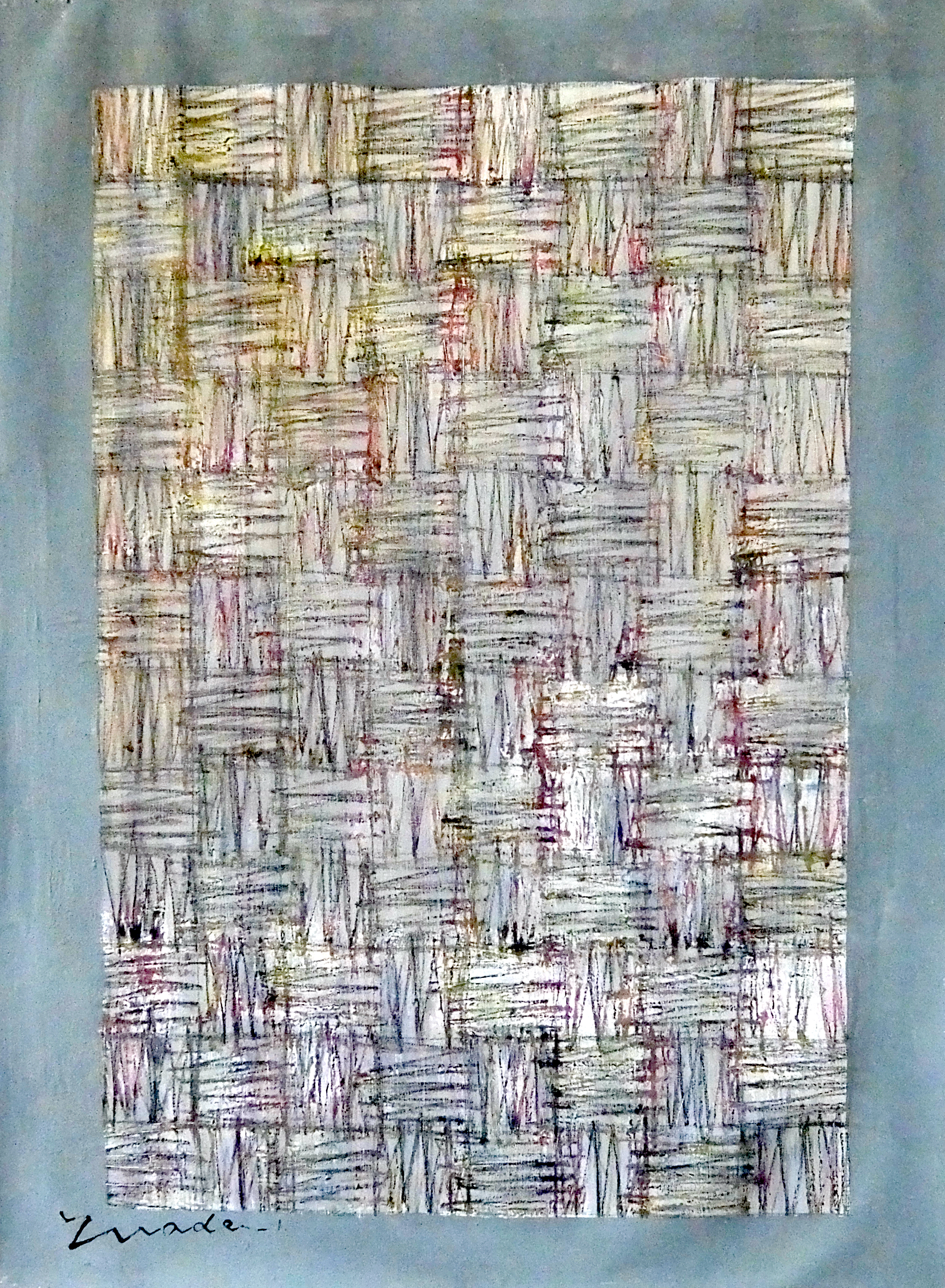 Multi-talented pencil, colored pencil, gouache, acrylic and red scoria on canvas