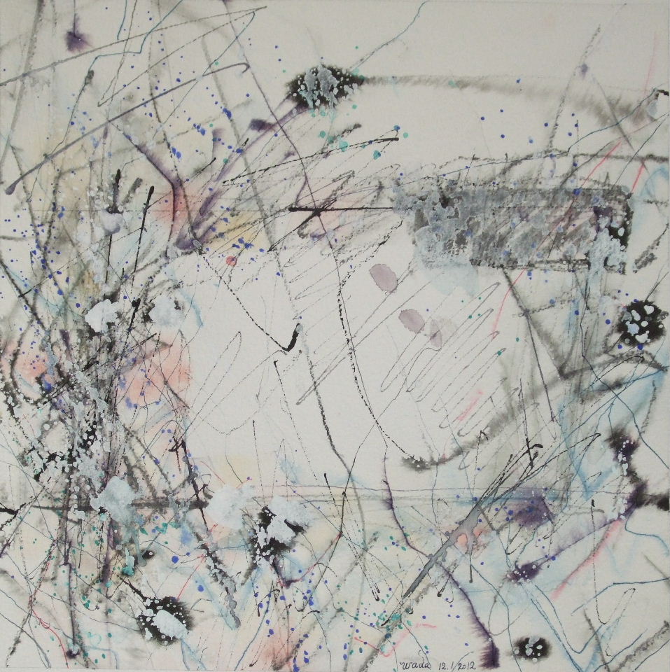 紙に墨、水彩、白インク、白鉛筆、鉛筆